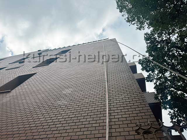 現場のマンション。この壁面に沿って吊り上げるしかありません