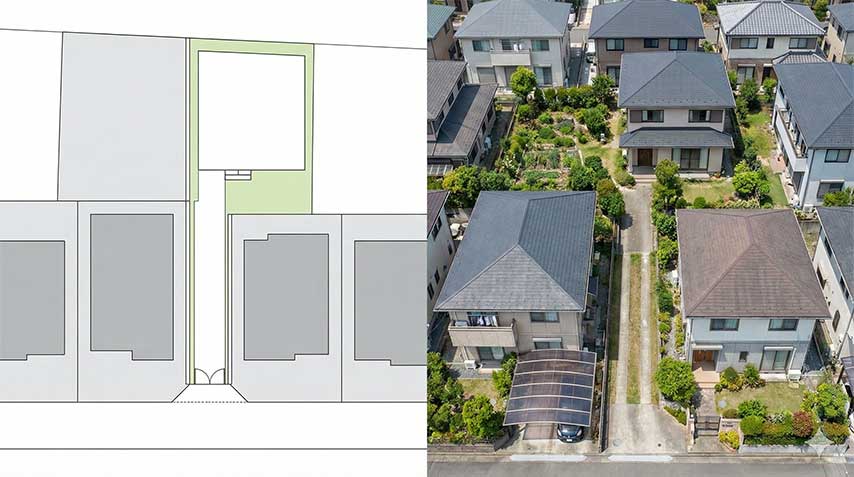 旗竿地のイメージ(生成AIによる描画であり実在する土地ではありません)