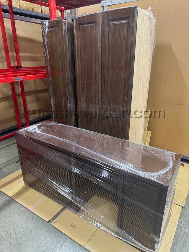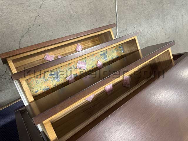 期間や状況に応じて適切な梱包もいたします。今回はお客様のご要望もありタンスの中に防虫剤を入れた上でフィルムで梱包しました。